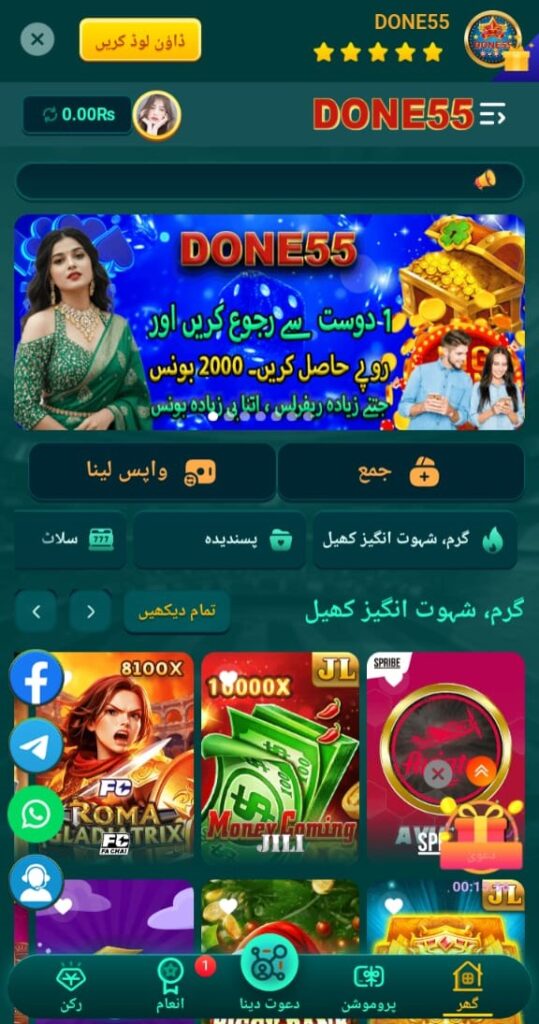 Done55 is an online earning and gaming application that has attracted attention in Pakistan due to its multiple in-app earning opportunities and support for local payment systems like Easypaisa and JazzCash. The platform offers various activities, including game-based rewards, referrals, and promotional bonuses.